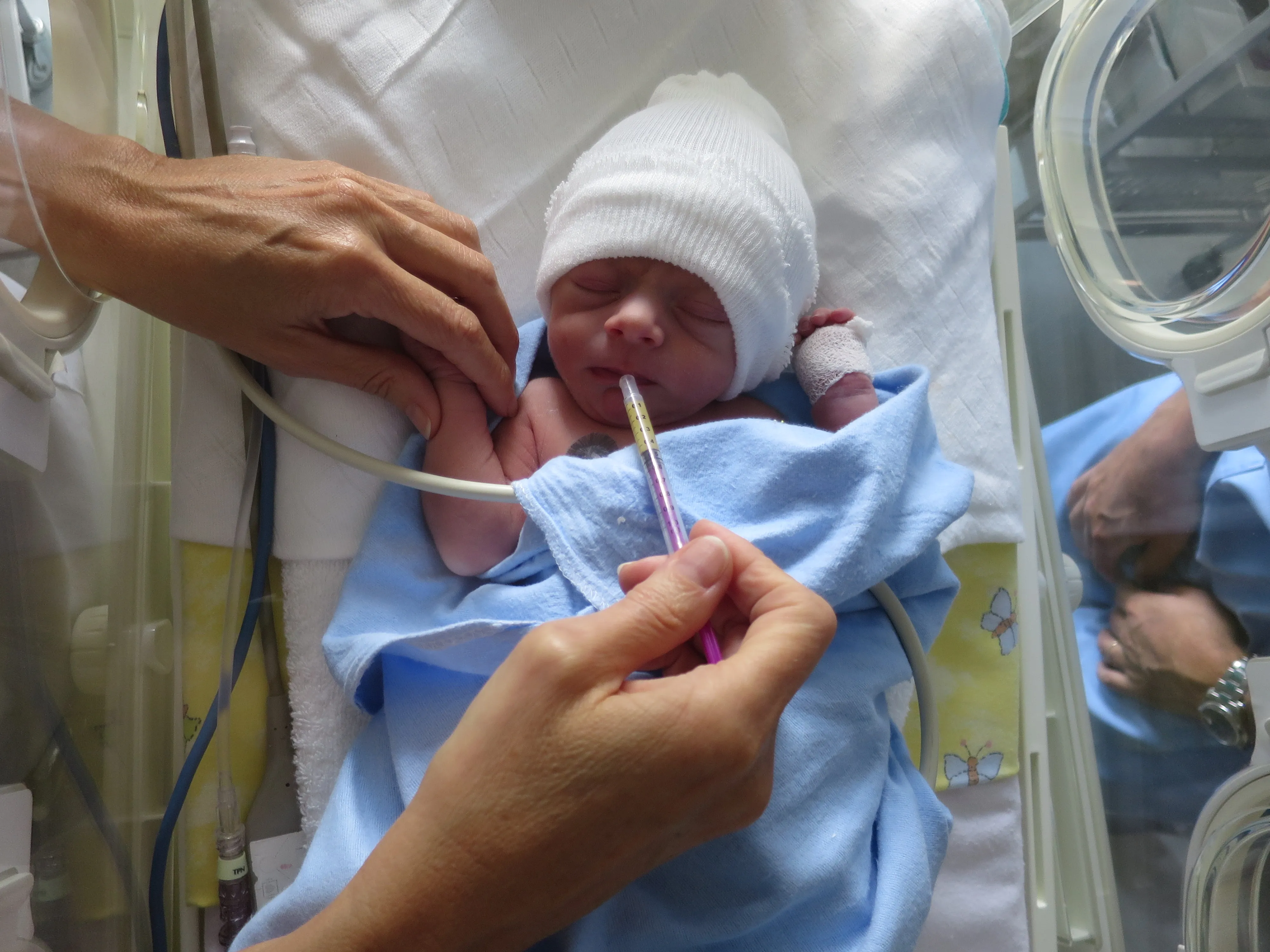 Au début, votre bébé ne sera pas toujours capable de boire mais le personnel soignant dispose de petits « trucs » pour lui apprendre à manger ou lui donner à boire : à la cuillère, au gobelet, à la seringue ou encore à l’aide d’une petite sonde.