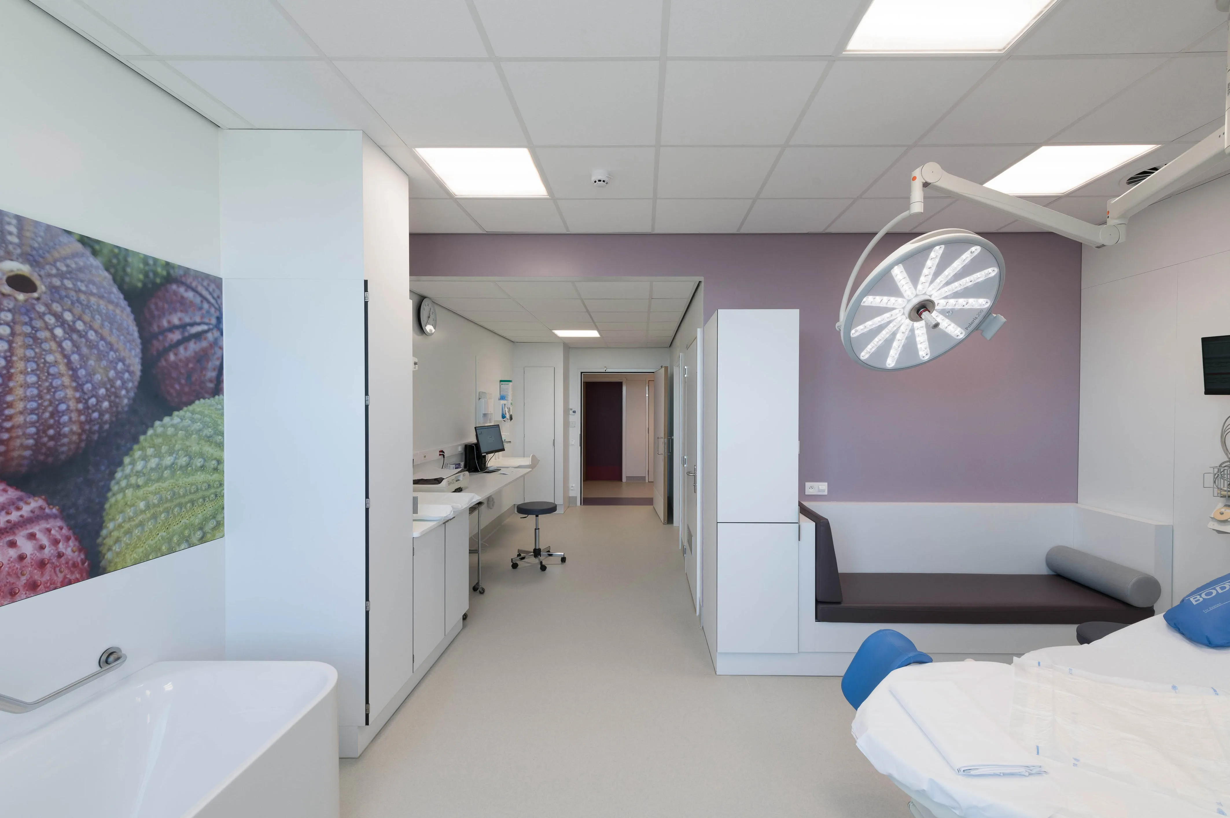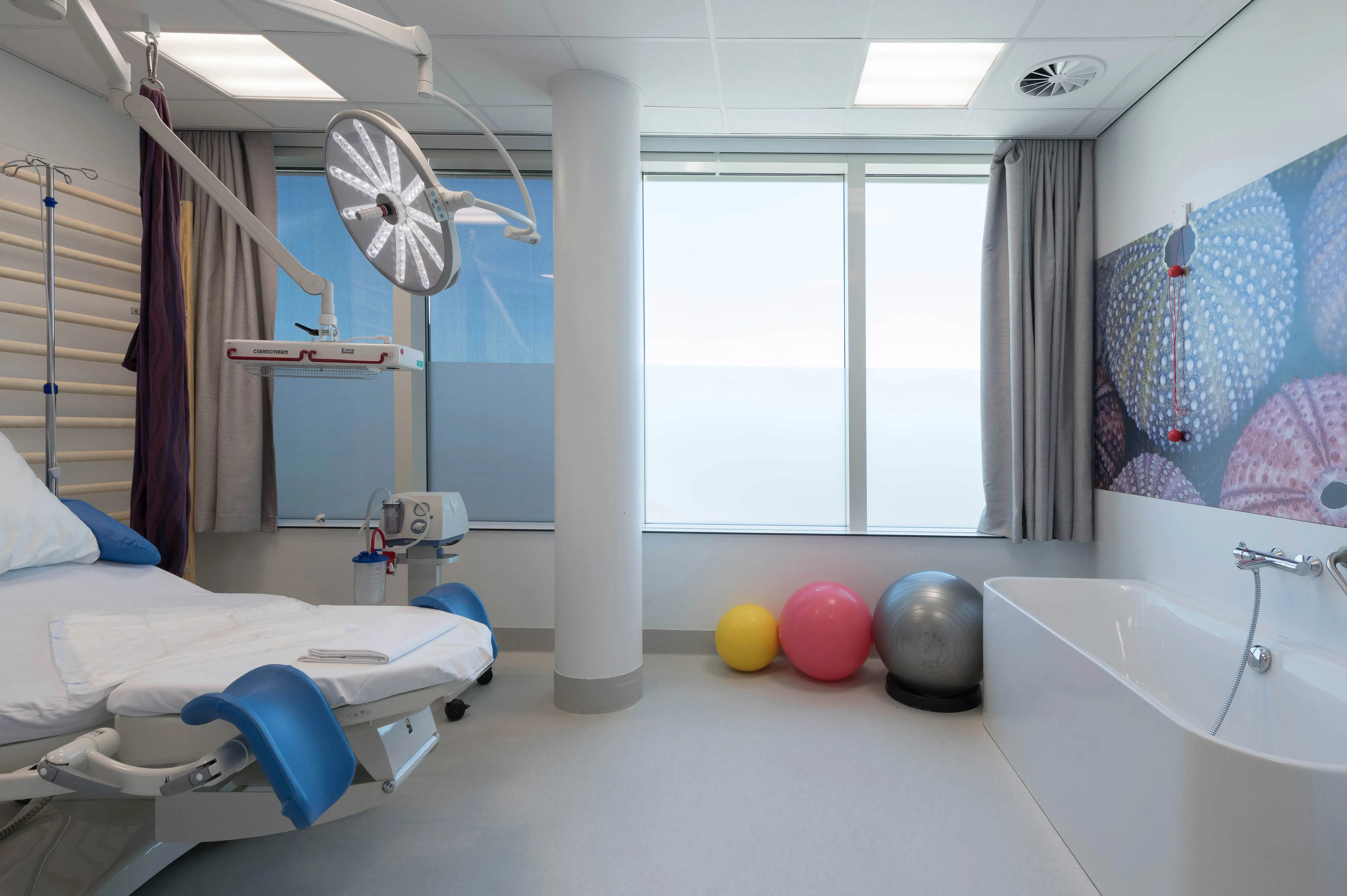 Le quartier accouchements de la Maternité 'Edith Cavell' de l'hôpital Delta se compose de 10 salles de naissance dont une salle nature et une salle de dystocie pour les accouchements compliqués (jumeaux, sièges, antécédents de césarienne, ...), ainsi qu'une salle de césarienne et une salle de réveil sur le même plateau.