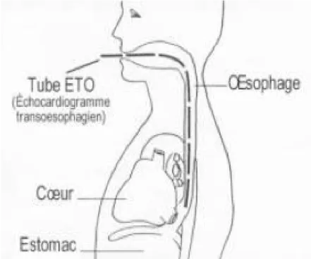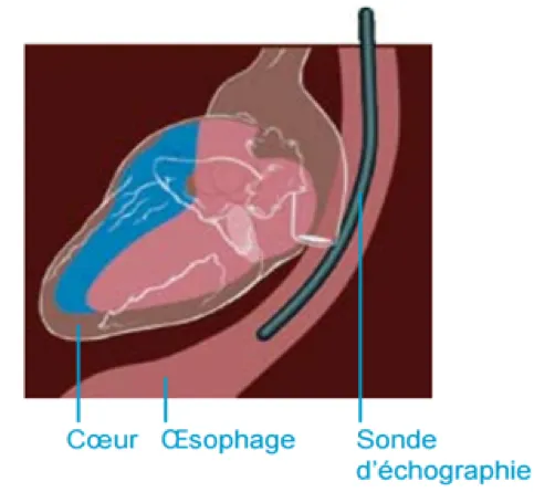 - Il s'agit d'une échographie réalisée vie l'introduction d'une sonde à la forme d'un tuyau souple qui passe par la bouche puis le pharynx et enfin l'oesophage, afin d'explorer les structures cardiaques.