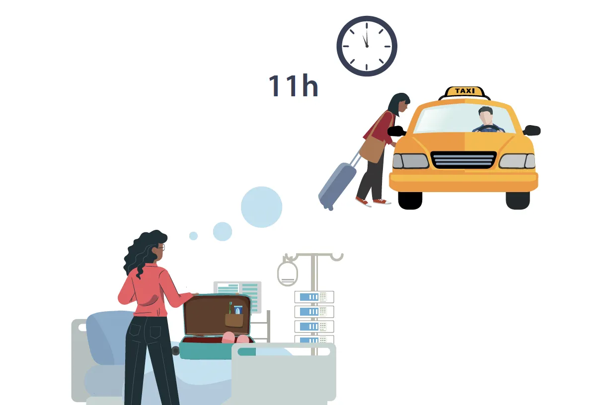 Afin de prendre en charge tous nos patients de manière optimale, nous vous demandons de vous organiser pour libérer votre chambre avant 11h, le jour de votre départ (après autorisation de sortie).